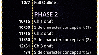 Tentative Schedule PHASE 1 8/24 Main character concept art (3) 9/4 Draft Outline 9/8 Final sprite (MC) 9/16 Final Sprite (LI 1) 9/23 Final Sprite (LI 2) 10/7 Final Sprite (LI 3) 10/7 Full Outline PHAS...